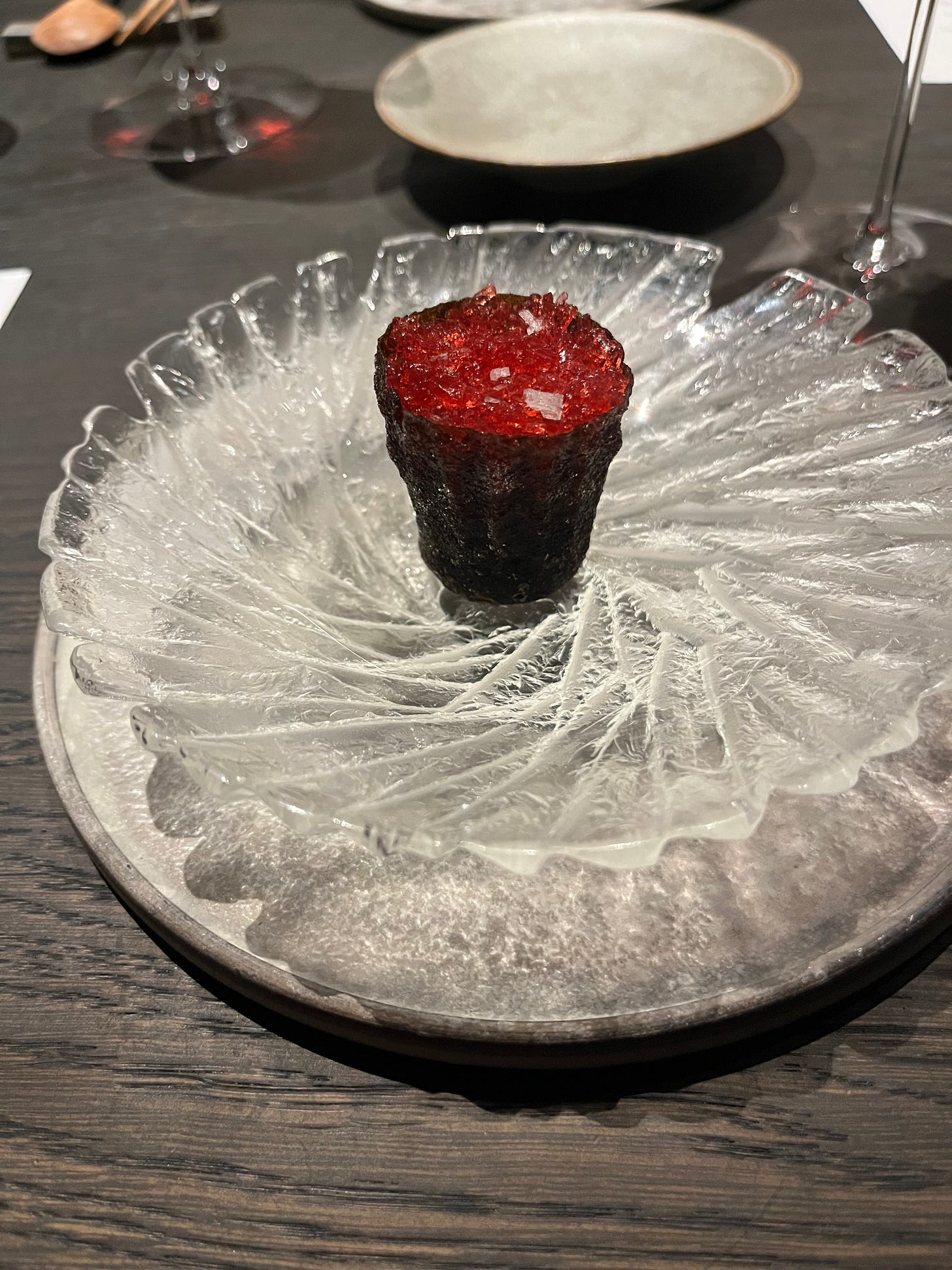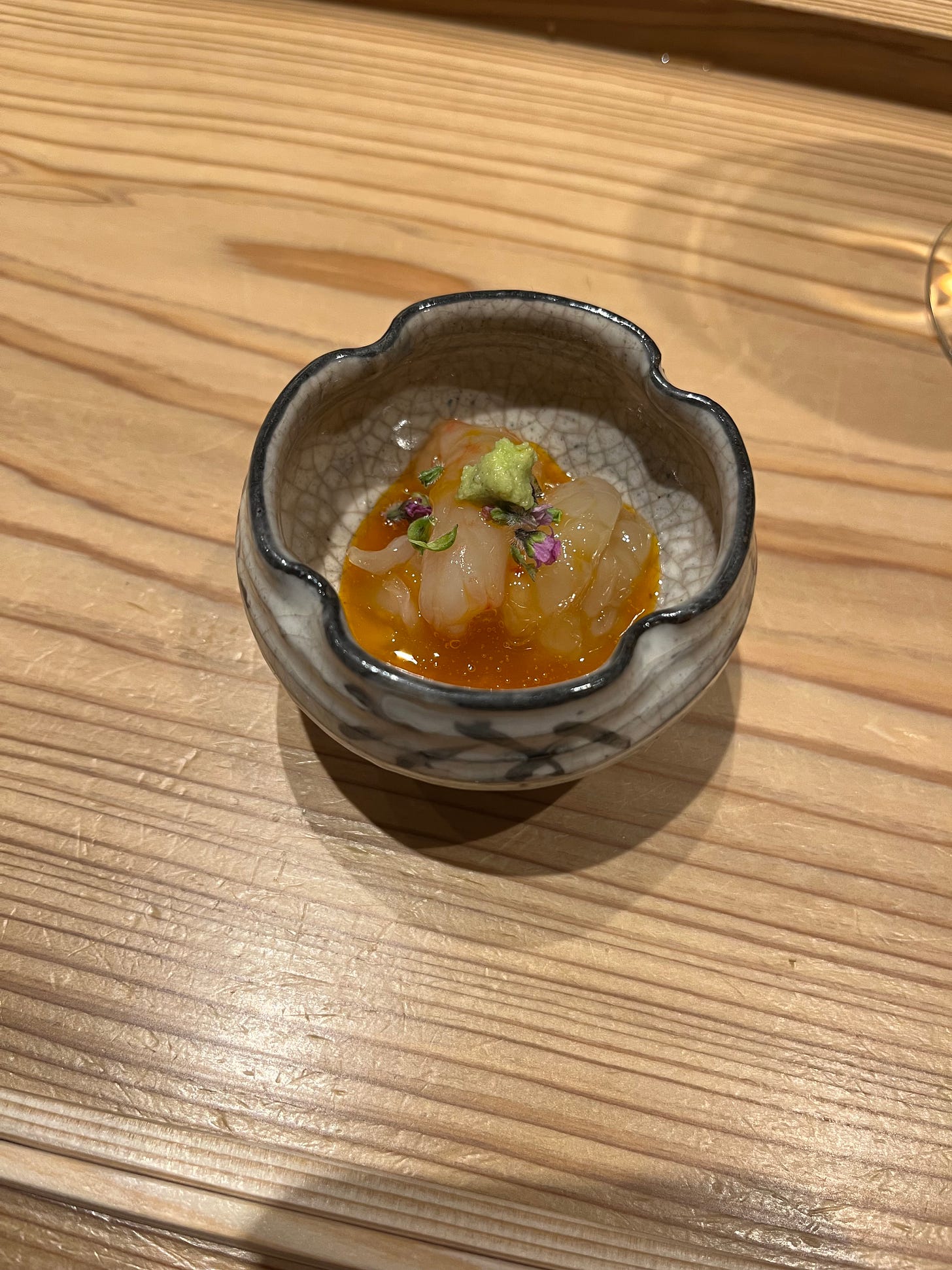 Technique is the name of Ukiyo’s game. Sauces, broths, and vinaigrettes were used to devastating effect, elevating dish after dish. Seasonings are assertive, especially by Japanese standards, where black pepper is considered spicy. At several points during the meal spices were brought to the table alongside dishes, for our appreciation. Here you could feel Ukiyo’s chef Toshi Akama’s provenance, as the former sous chef of Ikoyi, the notoriously spicy West African two-star in London.