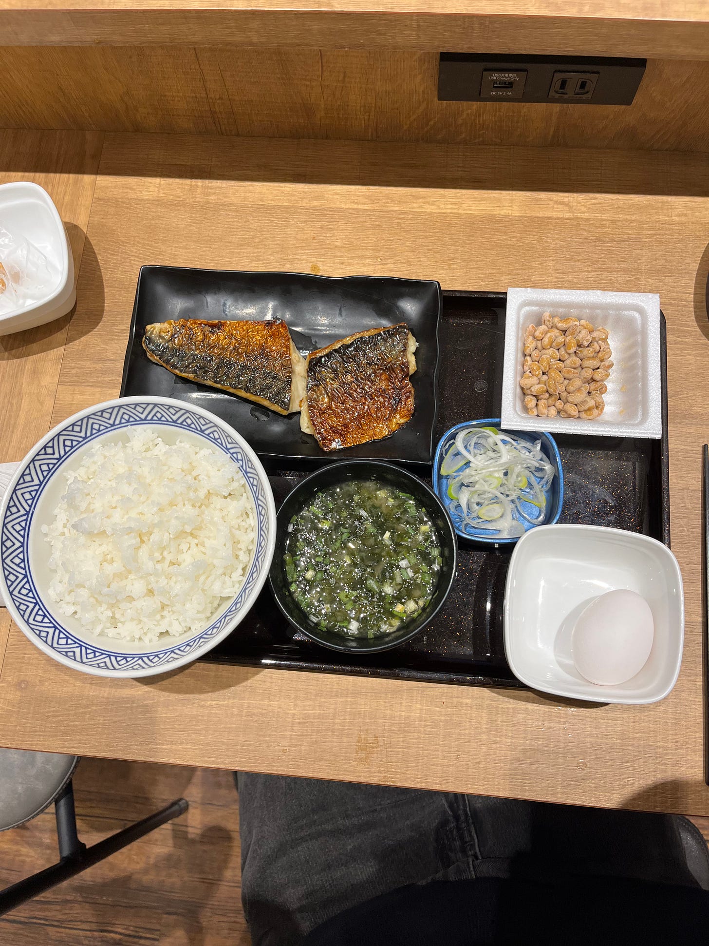Mackerel Special Breakfast Set at Yoshinoya (Fukuoka)