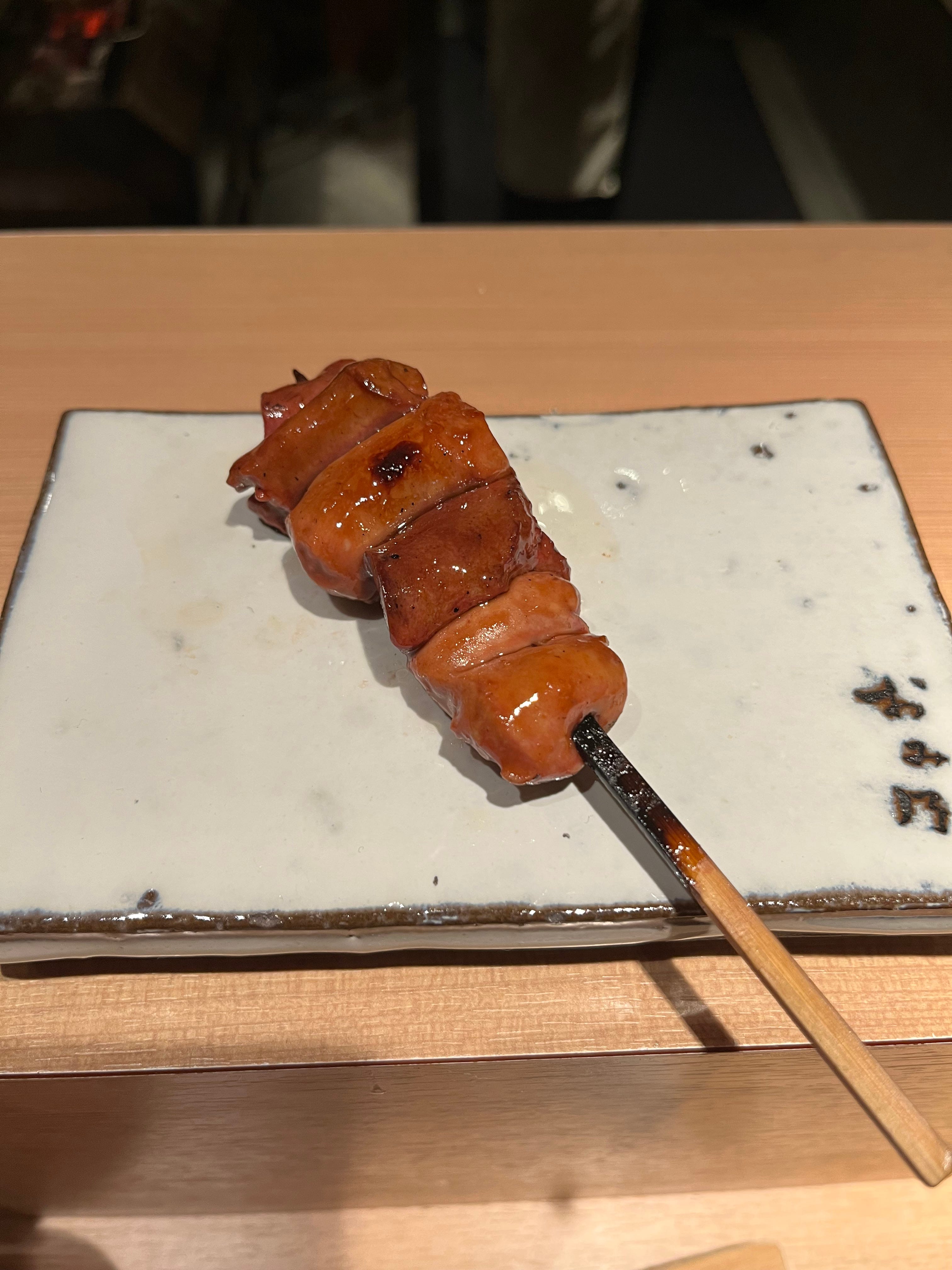My Ashkenazi instincts will never say no to chicken liver in any form, but I wouldn’t be surprised if every other liver I ever eat is downhill from here. The whole meal was a glorious tribute to our planet’s most consumed lifeform (we eat something like 75 billion chickens a year) and there were too many mind-blowing moments to mention: heart, esophagus, shoulder, oyakodon at the end. Turns out chickens are made from a lot of parts, and if you know what you’re doing, all of them can taste good. This kinda meal is so special because you feel like you’ve re-discovered a sublime potential hidden inside something you’ve long since taken for granted, breaking through the stale prison of habit etc. Anyone who has taken psychedelics can relate, “Wow, man, look at that cloud, it’s so beautiful, I might cry…”