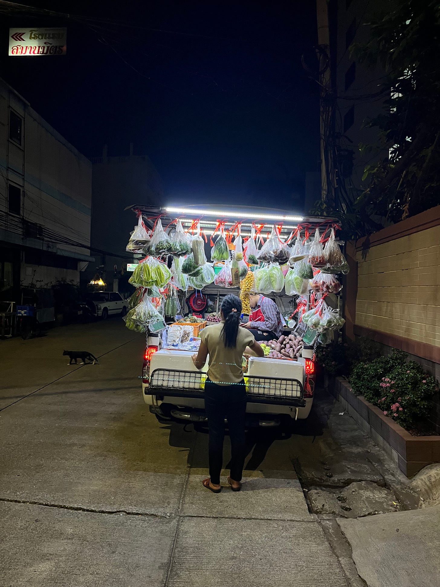 A mother and her disabled son, helpless, yet helping each other, singing softly, walking slowly, through the humming night market throng. This scene made me want to cry then and it makes me want to cry now.